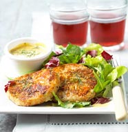 * For each serving form 2 to 3-inch patties. Dust patties with flour and coat with pecan bits. Refrigerate, until ready to cook. Repeat with remaining mixture.