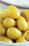 Yellow-Flesh potatoes are grown mostly in Wisconsin and are available in late summer and early fall. These potatoes have a dense, creamy texture, which makes them a good baking, mashing, and roasting potato. With their golden color, you may be fooled into thinking that they are buttered. The most popular Yellow-Flesh variety is the Yukon Gold potato. |