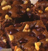 Sprinkle with chocolate chips and nuts. Bake until brownies are firm when lightly touched, about 25 to 30 minutes (for half batch, bake 22 minutes). Cool on rack. Cut into squares to serve. Store in a container that allows air – airtight containers will be soggy. |