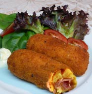 Croquette with ham and mashed potatoes, along with egg, parsley, and seasonings recipe: Croquettes are lightly breaded and fried kind of fritter. They are a sure hit with kids and grown ups alike. As a meal try serving with green peas in a creamy white sauce. |